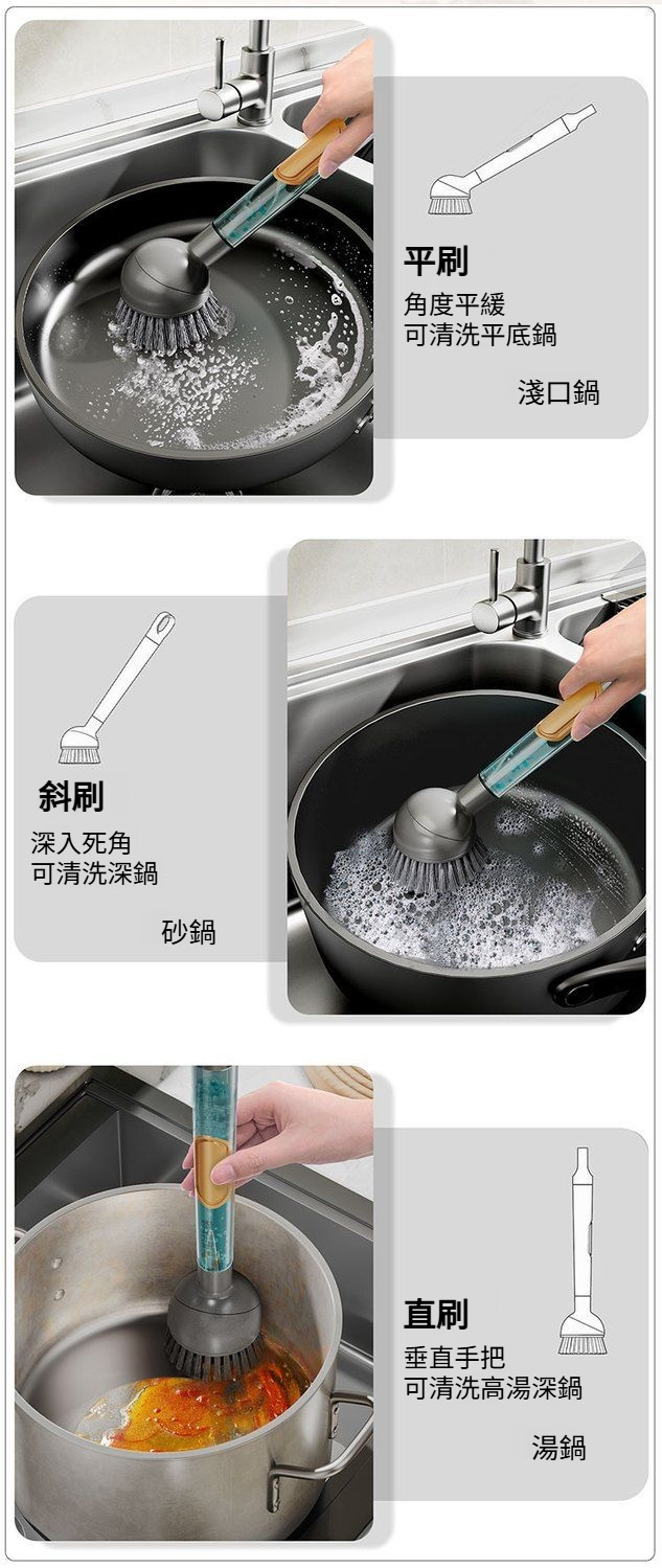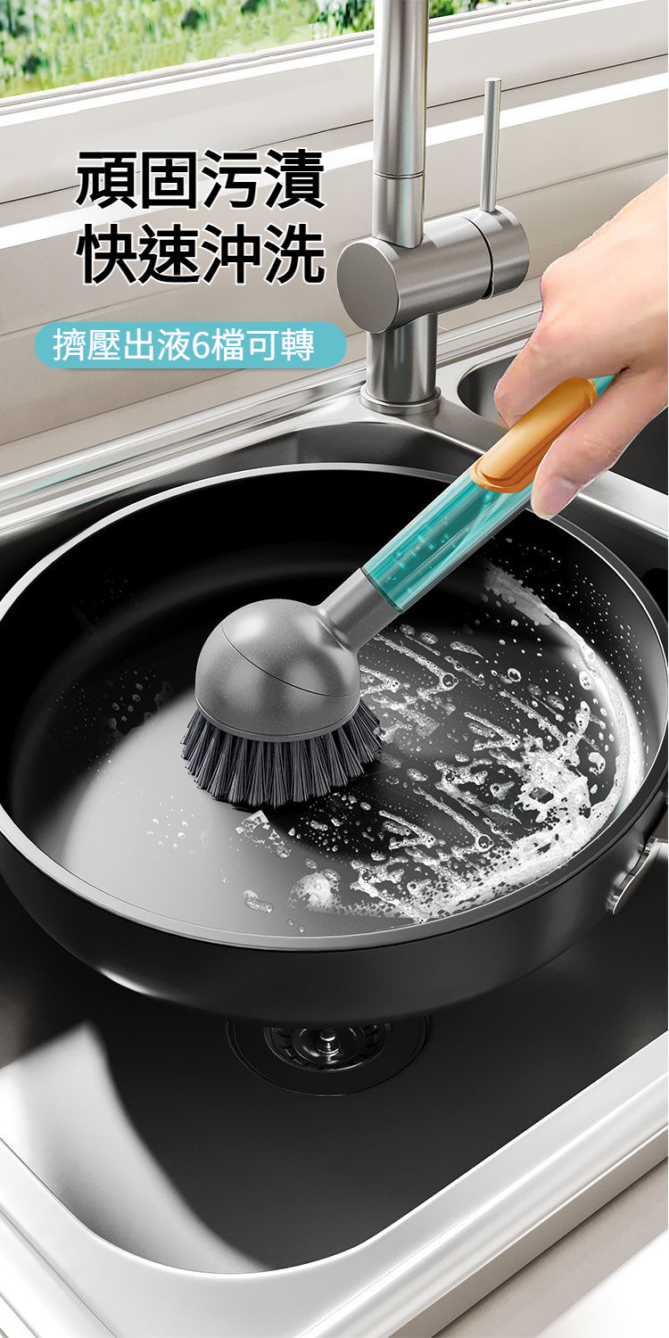 按壓出液多功能廚房清潔刷