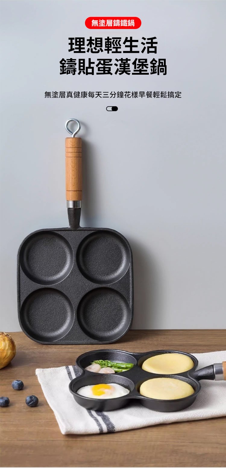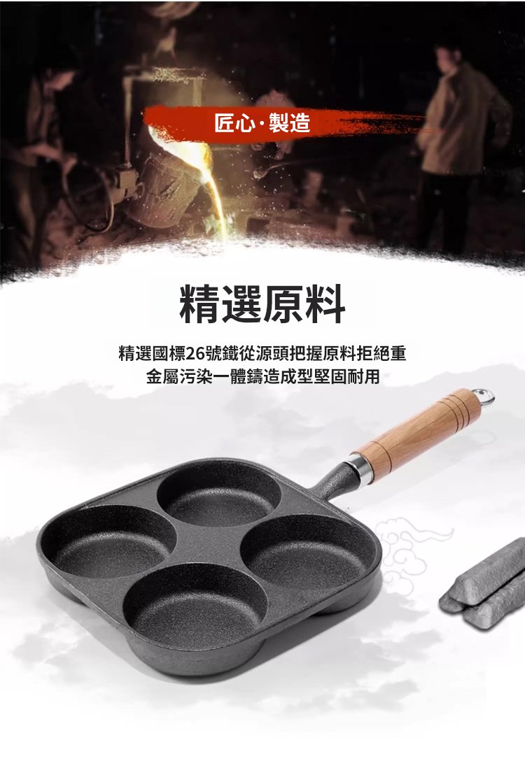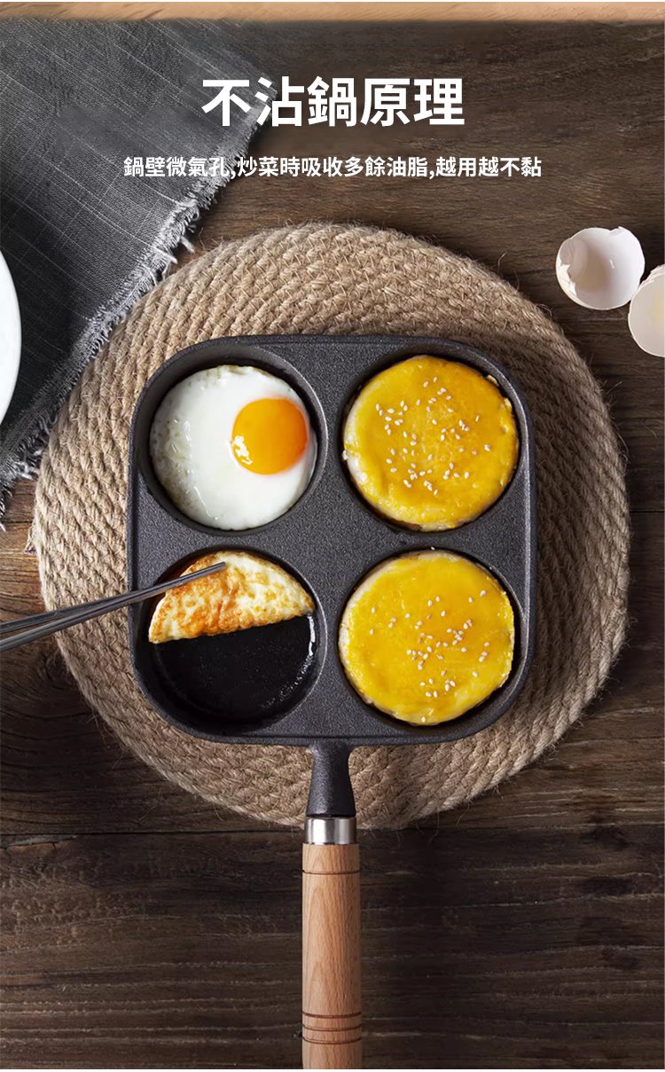 加深四孔鑄鐵不沾煎鍋